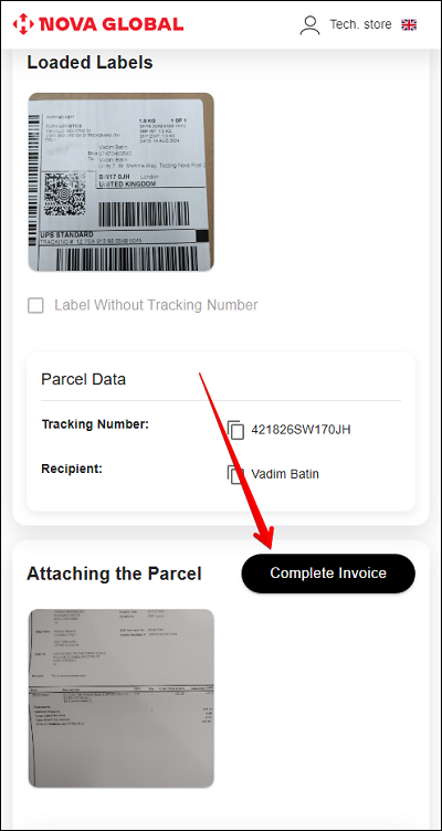 You can supplement the invoice only for parcels with the status Invoice Incomplete.