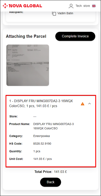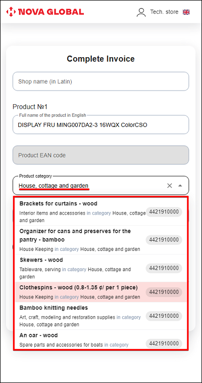 - If it was not possible to automatically generate the necessary data about the goods from the printed invoice or from the EAN of the goods;