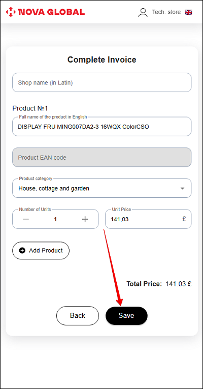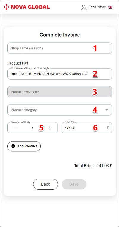 | 2 | Full name of the product in English | Enter the full name of the product (in English) |