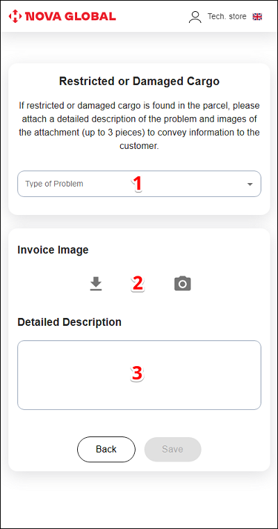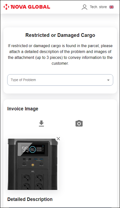 | 2 | Invoice Image | Upload a photo of the parcel |