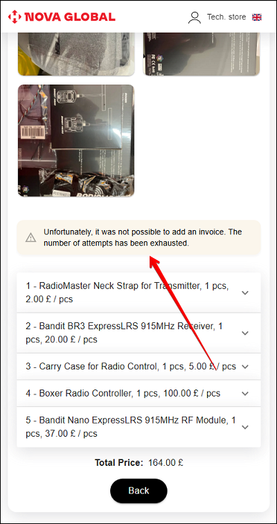 Unfortunately, it was not possible to add an invoice. The number of attempts has been exhausted