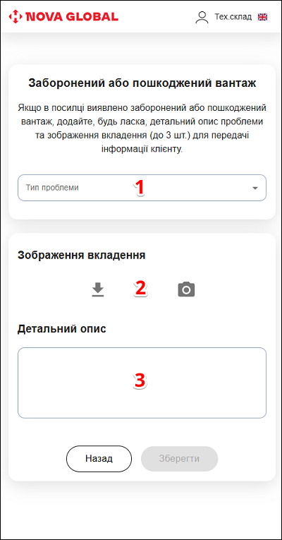 | 2 | Зображення вкладення | Завантажте фото вмісту посилки (до 3 шт.) |