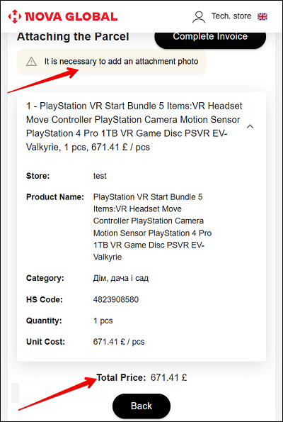 Addition of the image of the package is mandatory only for parcels over €150. In such case, the user will be presented with the message: It is necessary to add an attachment photo