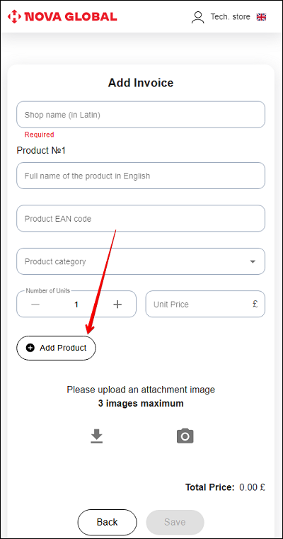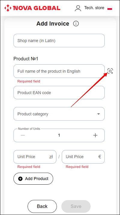 - Fill the required fields: Shop name (in Latin), Product category, Number of Units, Price per Unit