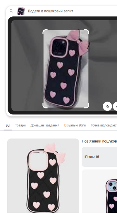 After adding a photo and pressing the Search button, the image will be processed by the Google Lens service.
